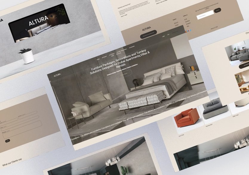 ALTURA wanted a website to highlight their fashionable furniture range and turnkey interior solutions while being user-friendly and visually appealing. The emphasis was on showcasing tailored packages, unique design choices, and full-service offerings in a manner that shows simplicity, quality, and effectiveness. AUN Digital, the best web development company in Dubai, created a website enabling customers to easily explore choices, discover services, and connect.