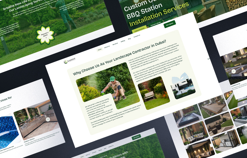 Kahoot Landscaping & Gardening (KLG) is a Dubai-based company providing outdoor solutions, including pools, pergolas, irrigation systems, and water features. Despite their strong service offerings, their website did not fully showcase their projects or support client inquiries. They contacted AUN Digital to be their web development company in Dubai to create a modern, user-friendly website that highlights their services, displays completed projects, and helps generate leads.