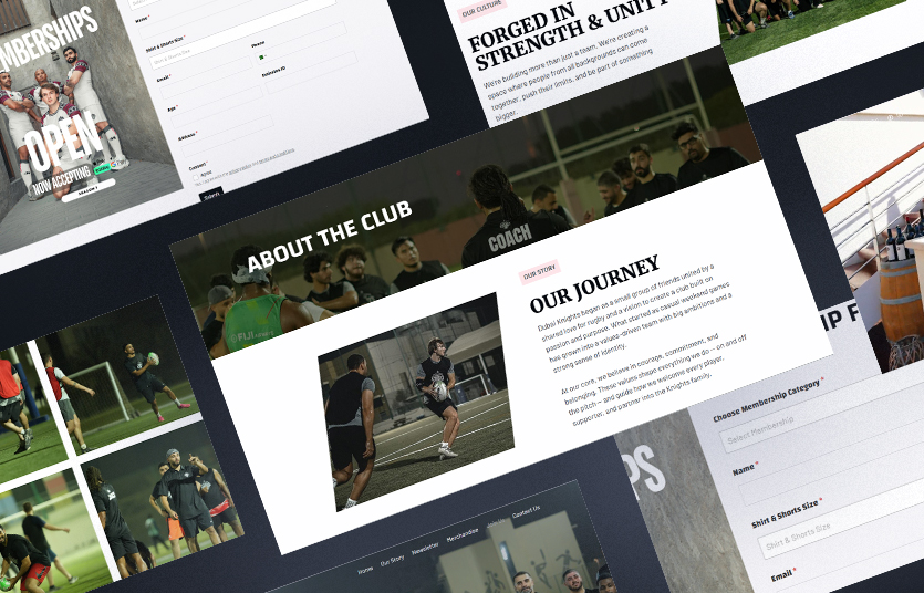 Dubai Knights Rugby Club, as a premier passion-focused rugby club in Dubai, UAE, needed a strong digital presence to match their ambitious vision. We develop a modern and engaging website for DKRFC, helping them build their online identity, attract new members, fans, and improve their position as a growing force in Dubai's rugby community.